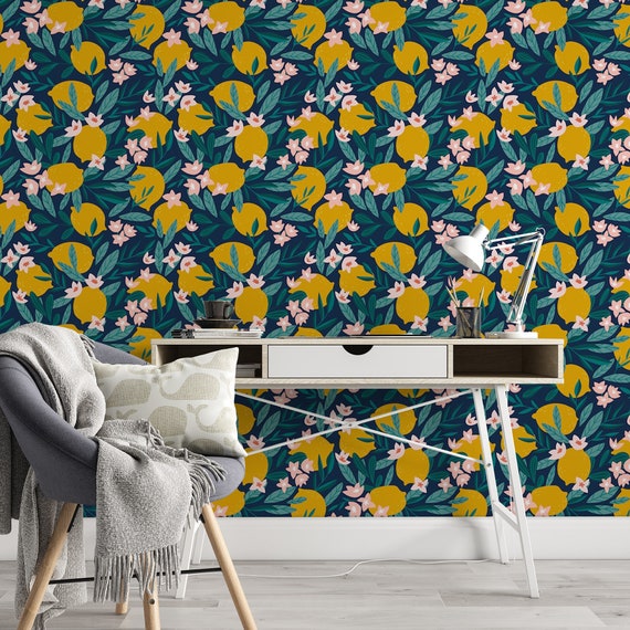Buy Lemon Plant Removable Wallpaper Blue Leaf Wall Cling Pretty Online In India Etsy
